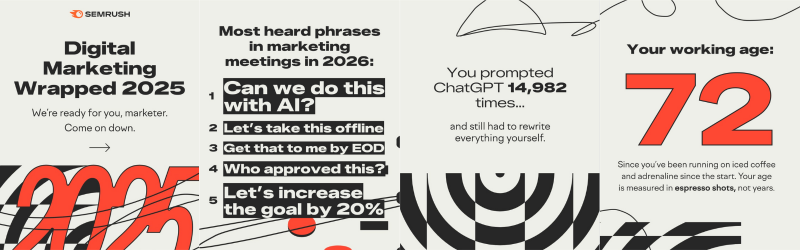 Each December, brand pages jump onto the trend with their own witty, self-aware interpretations—from Semrush’s “2025 Wrapped” to Instagram meme accounts like Humorous Resources or even Ryanair parodying the format with their unmistakable humour. These playful, fast-turnaround responses ride the wave of cultural relevance, earning impressions, engagement and visibility while reinforcing the dominance of the original Wrapped narrative.